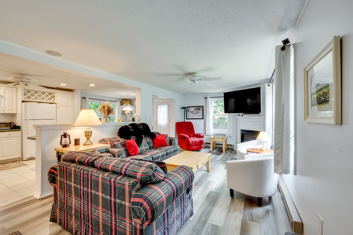 Fly till hjärtat av White Mountains och bo i detta inbjudande semesterboende i North Conway! Detta radhus med 4 sovrum och 2,5 badrum är perfekt för familjer och kombinerar komfort och äventyr. Mys vid brasan efter en dag i backarna, eller koppla av på den rymliga altanen när det är varmt ute. Utforska favoritställen i närheten som Echo Lake State Park, Cranmore Mountain Adventure Park och den helt nya vattenparken Moo Lagoon på Story Land. Detta tillflyktsställe erbjuder nöje året runt för hela familjen – boka idag!