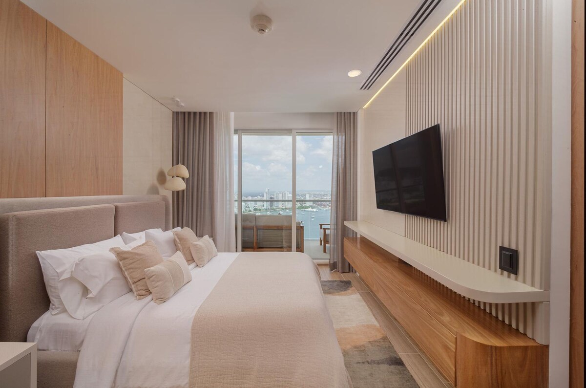 Upplev Bocagrande som aldrig förr! Bo i en modern och elegant lägenhet med hisnande utsikt, perfekt för resenärer som söker komfort, design och ett utmärkt läge. Beläget i hjärtat av Bocagrande, bara några steg från de bästa restaurangerna, butikerna och den vackra Castillogrande-bukten. Dessutom är du bara några minuter från Cartagenas historiska centrum, där kolonial charm och rik historia väntar.