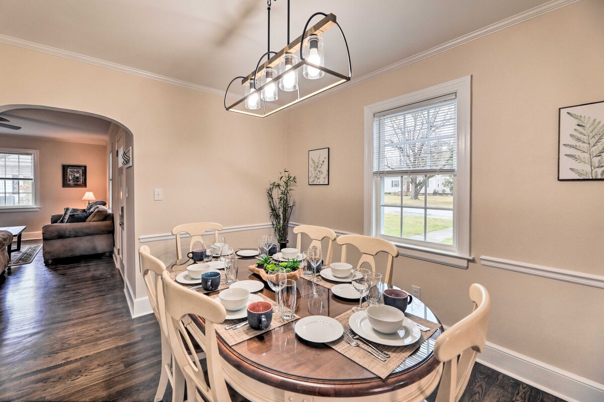 Utforska enkelt staden New Bern från detta charmiga boende, perfekt för familjer eller vänner som söker en flykt! Komplett med 3 sovrum, 2 badrum och alla bekvämligheter hemifrån, är detta semesterboende redo att tillgodose alla dina behov när du njuter av det fantastiska friluftslivet. Ge dig ut till Trent River för en rolig dag på vattnet eller bege dig till stan och kolla in Pepsi Colas födelseplats. Efteråt, laga din favoritmåltid i det fullt utrustade köket och samlas runt matbordet.