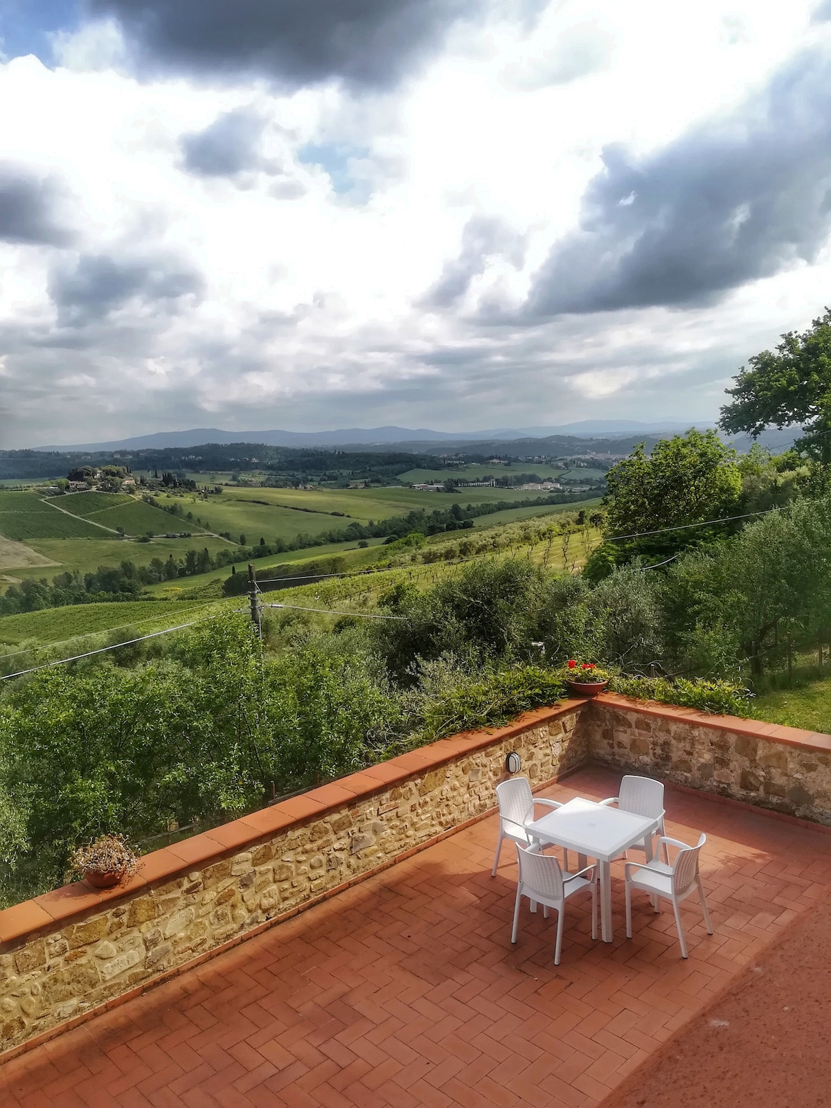 På Chianti-kullarna, en del av en gammal stenbondgård från 1800-talet, belägen i S. Filippo, en liten by i Barberino Tavarnelle, halvvägs mellan Florens och Siena, 30 minuters bilresa från Florens flygplats, 1 timme från Pisa. Tre sovrum, två badrum, stort vardagsrum med öppen spis, kök och matsal. Fantastisk utsikt över kullarna från varje fönster! Fantastisk oändlig pool med bubbelpool, ej uppvärmd och öppen från april till oktober.