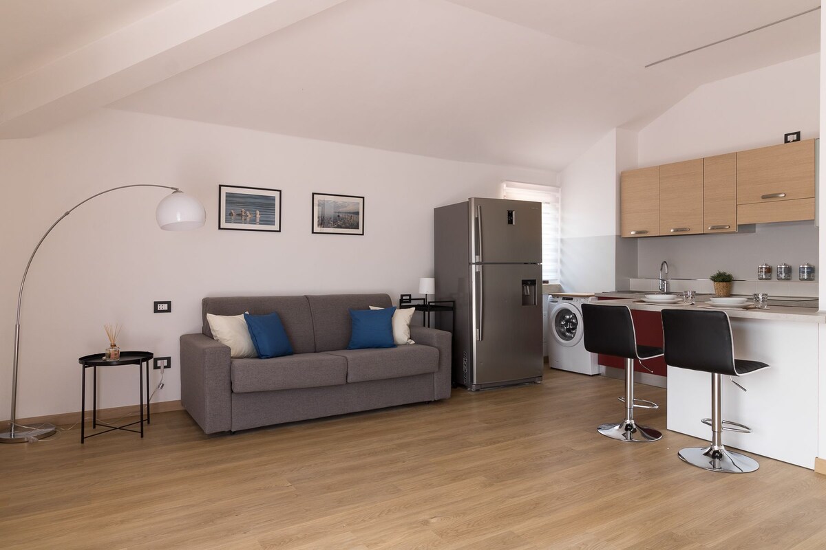 Skyline, Orizzonte, är en elegant takvåning belägen i centrum av Desenzano del Garda. Den har ett privilegierat läge 200 meter från den historiska stadskärnan och sjön med sin vackra promenad. Skyline ligger mycket nära ett område fullt av butiker, barer och restauranger, alla inom gångavstånd på några minuter. Tågstationen ligger bara 500 meter bort och motorvägsavgiften för Milano eller Venedig (A4) är cirka 3 km bort.
