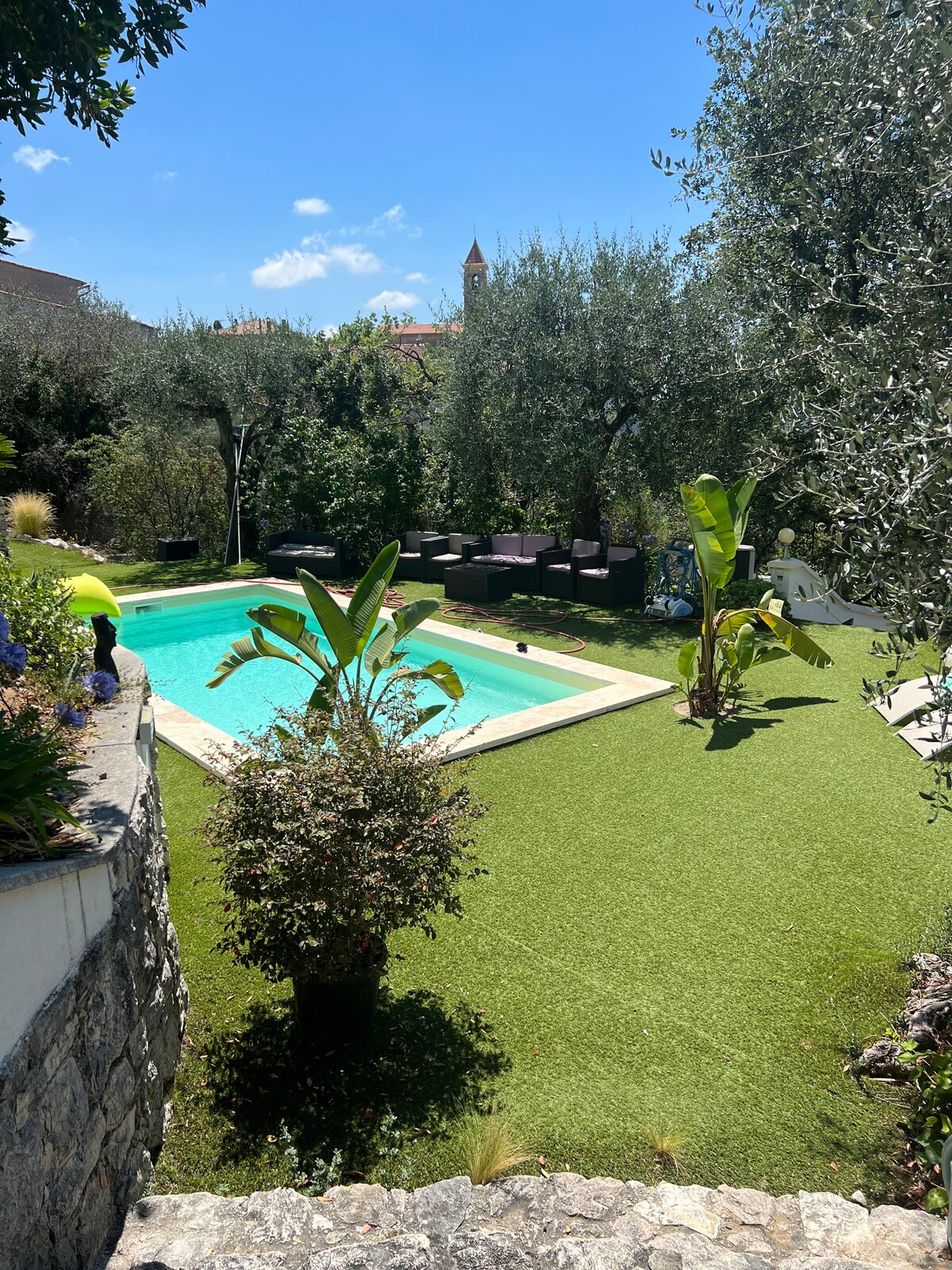 Koppla av i denna lugna och eleganta bostad, inbäddad i naturen i Nice inland ... Endast cikadorna (på sommaren) kommer att störa din lugn ... Det perfekta stället för att ladda batterierna och koppla av på franska rivieran ... Njut av den uppvärmda poolen och den stora privata terrassen utan insyn ... badrummet med utsikt över naturen ... Ett mysigt boende med en enkel och trendig inredning ...