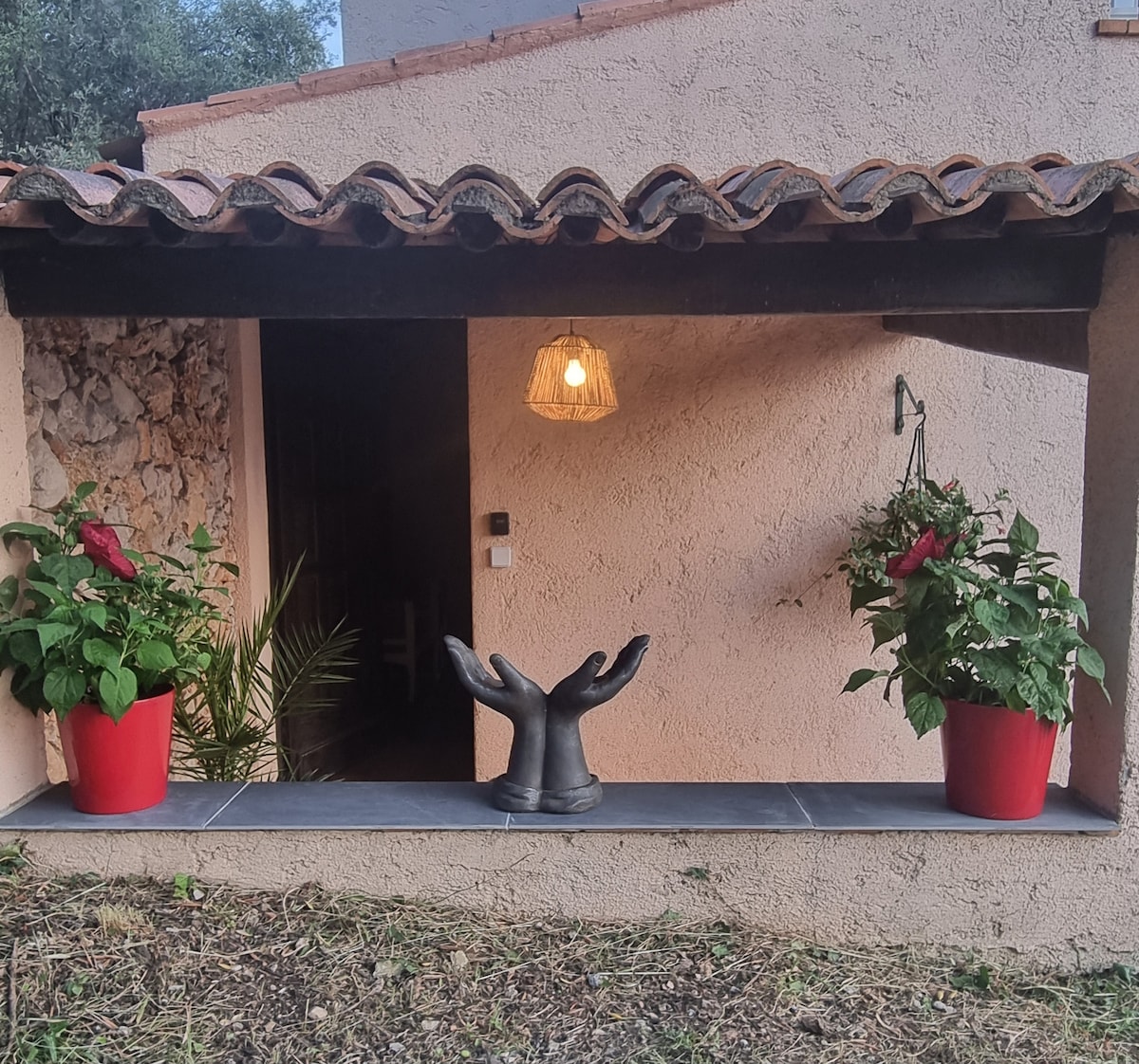 Petit STUDIO très bien équipée avec entrée et parking privé dans une grande Propriété avec piscine et jacuzzi chauffés du 10 avril au 30 octobre . La piscine extérieur et jacuzzi ainsi que le jardin sont partagés mais assez grand pour profiter chacun son espace de tranquillité . Je vis dans la bastide principale . Un Havre de Paix entouré d oliviers centenaires . A 35 minutes de l aéroport de Nice et divers villages provençaux et 14km de Cannes . Tele grand écran /abonnement Netflix