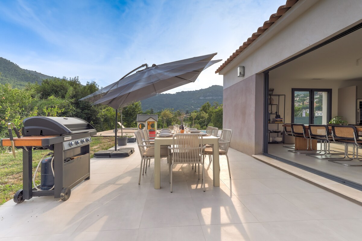 Med familj, som ett par eller med vänner, välkomnar Mélenzanis dig i en romantisk, intim och modern miljö vaggad av sången av cikadorna. Denna topp av villan med oberoende ingång i ett lugnt område inte förbises med en magnifik utsikt över Nice landet är fullt luftkonditionerad. Strategiskt beläget bara 25 minuter från stranden, 20 minuter från flygplatsen, 20 minuter från Nice, 3 minuter från den berömda restaurangen "Chez Michel" och dess Nice specialiteter.