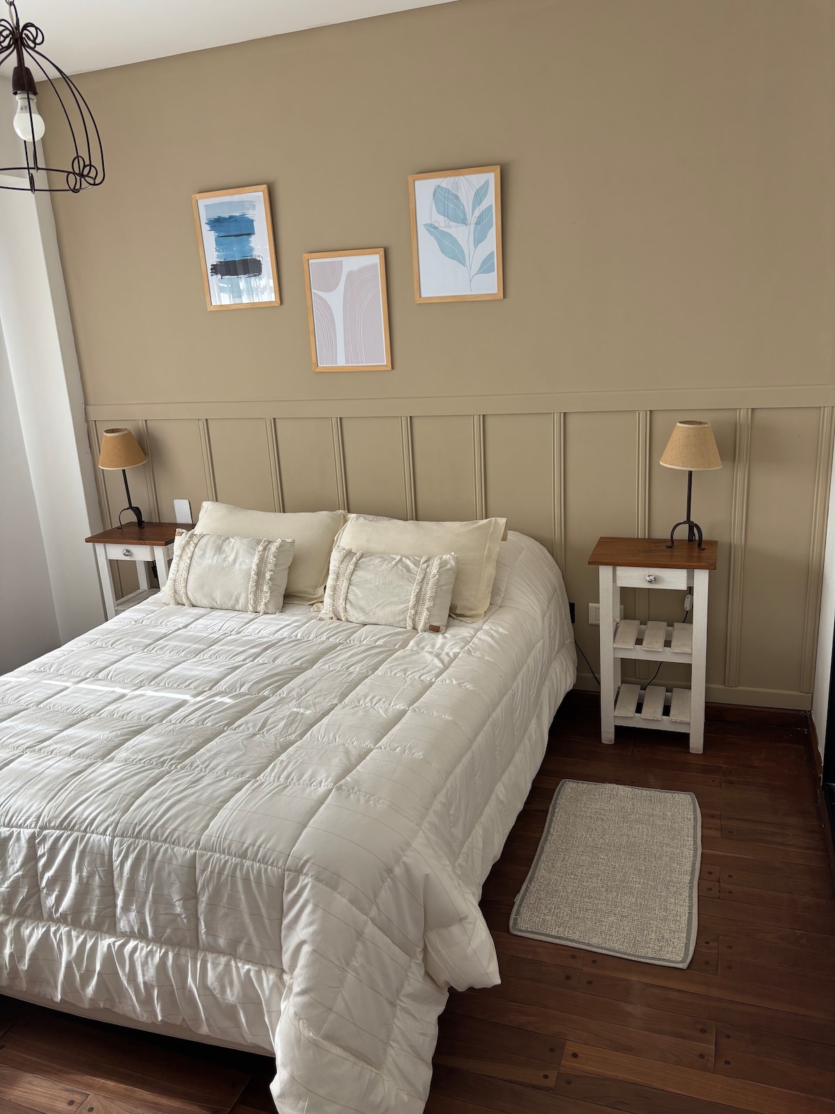 Relajate en este espacio tan tranquilo y elegante. Ubicado en una zona estratégica de Castelar a metros de la plaza del vagón y el centro, a dos cuadras de la estación. Calefacción con radiadores, aire acondicionado, smart tv y pisos de porchelanato con techo hormigón a la vista .