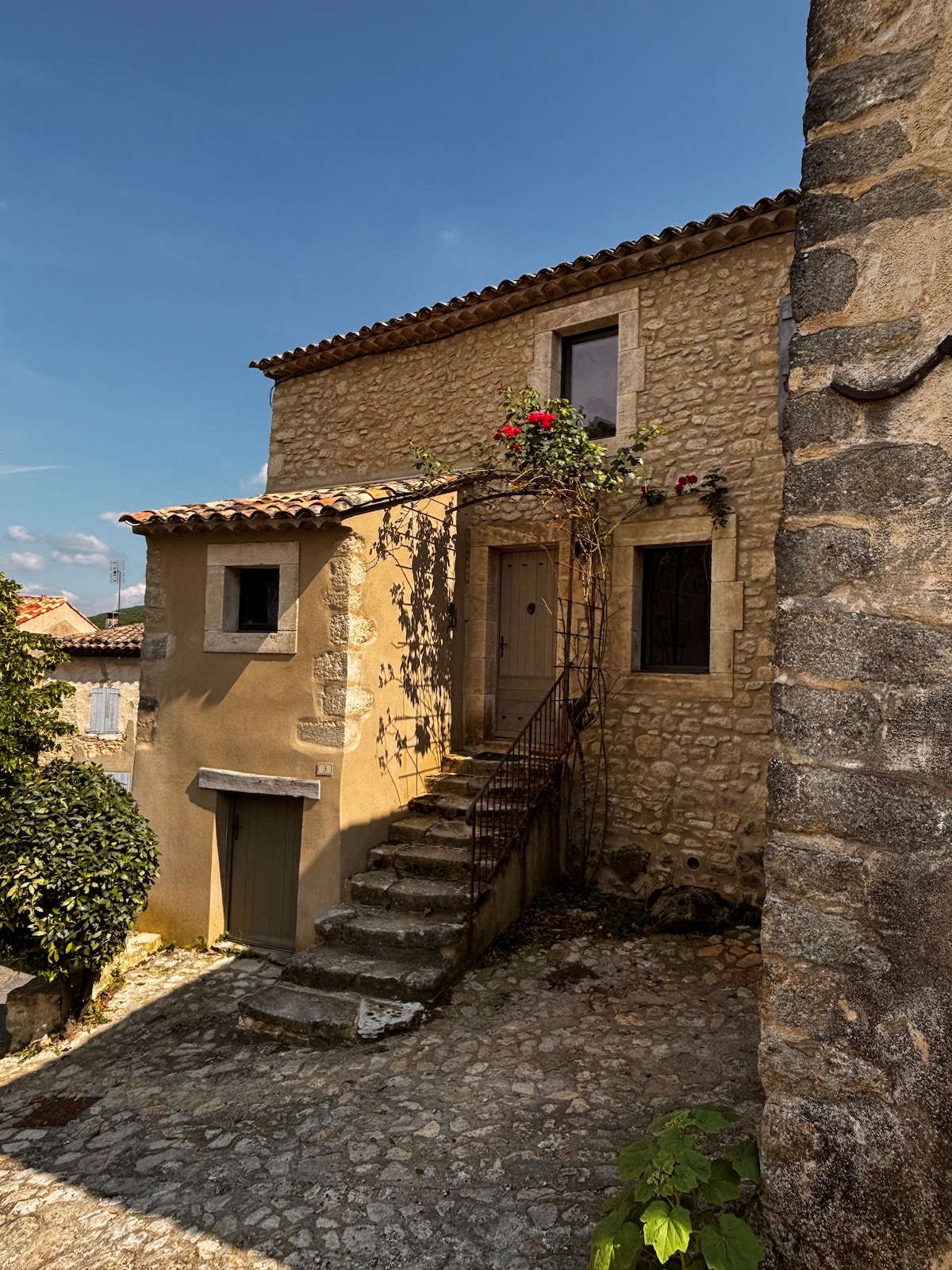 1400-talets byhus ligger ovanpå en kulle med vacker utsikt. En terrass med söderläge med utsikt över Petit Luberon-bergen. En fullständig renovering ger alla moderna bekvämligheter och en avkopplande atmosfär att njuta av efter en dag i Provence. Byn Menerbes (A Year in Provence — Peter Mayle) har mestadels lokala bybor som bor här. Vackra promenader och cykling är populära nöjen. Det finns museer, ett konstgalleri och några butiker som drivs av lokalinvånare. Oförstörd och helt unik.