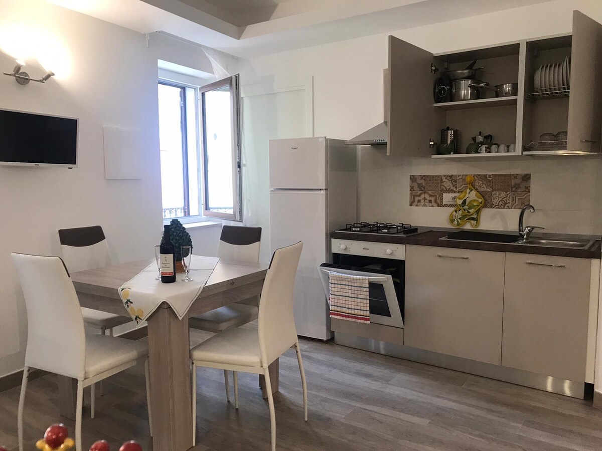 Lägenheten har en separat ingång, ligger i Castelmolas historiska centrum, vid foten av Mola slott. Från balkongen kan du beundra det majestätiska berget Etna med Naxosbukten. Nyrenoverad erbjuder den alla bekvämligheter (element, luftkonditionering, tvättmaskin, hårtork etc.): ett helt rum med dubbelsäng, ett stort badrum med dusch, en öppen köksvrå och en avkopplingshörna med bäddsoffa.