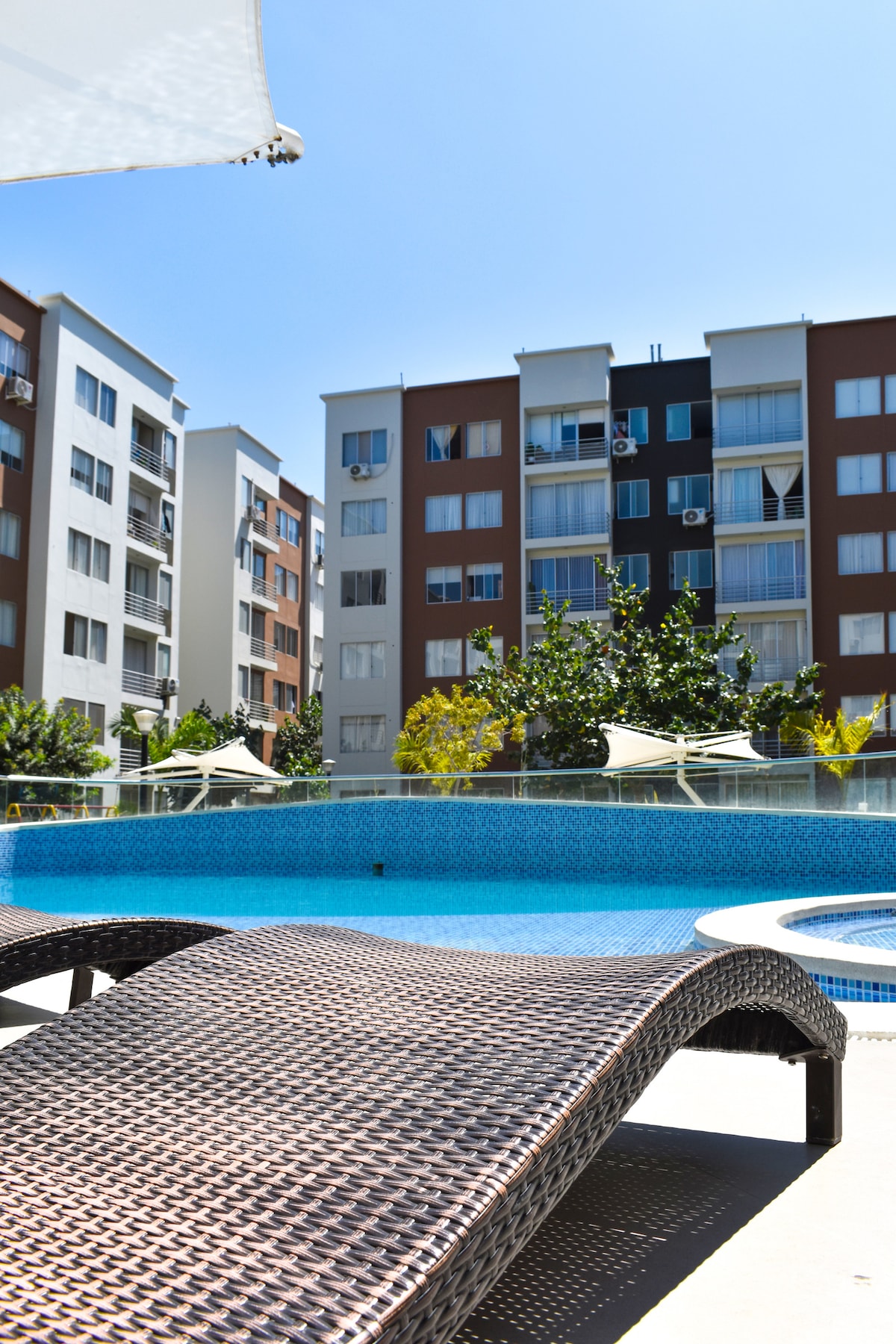 Moderno departamento ubicado en el Condominio Garden 360, full amoblado y equipado con vista a la piscina, wifi, 2 habitaciones (principal cama King y aire acondicionado), 2 baños completos. Seguridad 24/7. Áreas comunes: Piscina: 1 hora por reserva, rango horarios desde 8am hasta 6pm, sólo no está disponible los días lunes por mantenimiento. Gimnasio, Cine, Sala de juegos para niños.