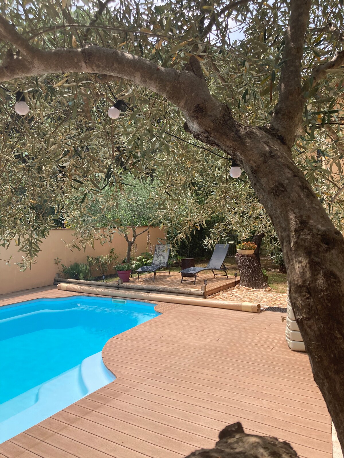 Detta boende Huset ligger beläget i ett tyst område. Den säkra porten vetter mot en stig och en trädgård full av medelhavsblommor och buskar. En aveny av olivträd leder till simhallen. De tre sovrummen vetter mot trädgården, utan vis-à-vis. Villan är rymlig, bekväm och varm. Den täckta terrassen (mot söder) har en dominerande utsikt över trädgården med ett stort träbord för 6 personer, erbjuder en lugn vistelse för hela familjen.