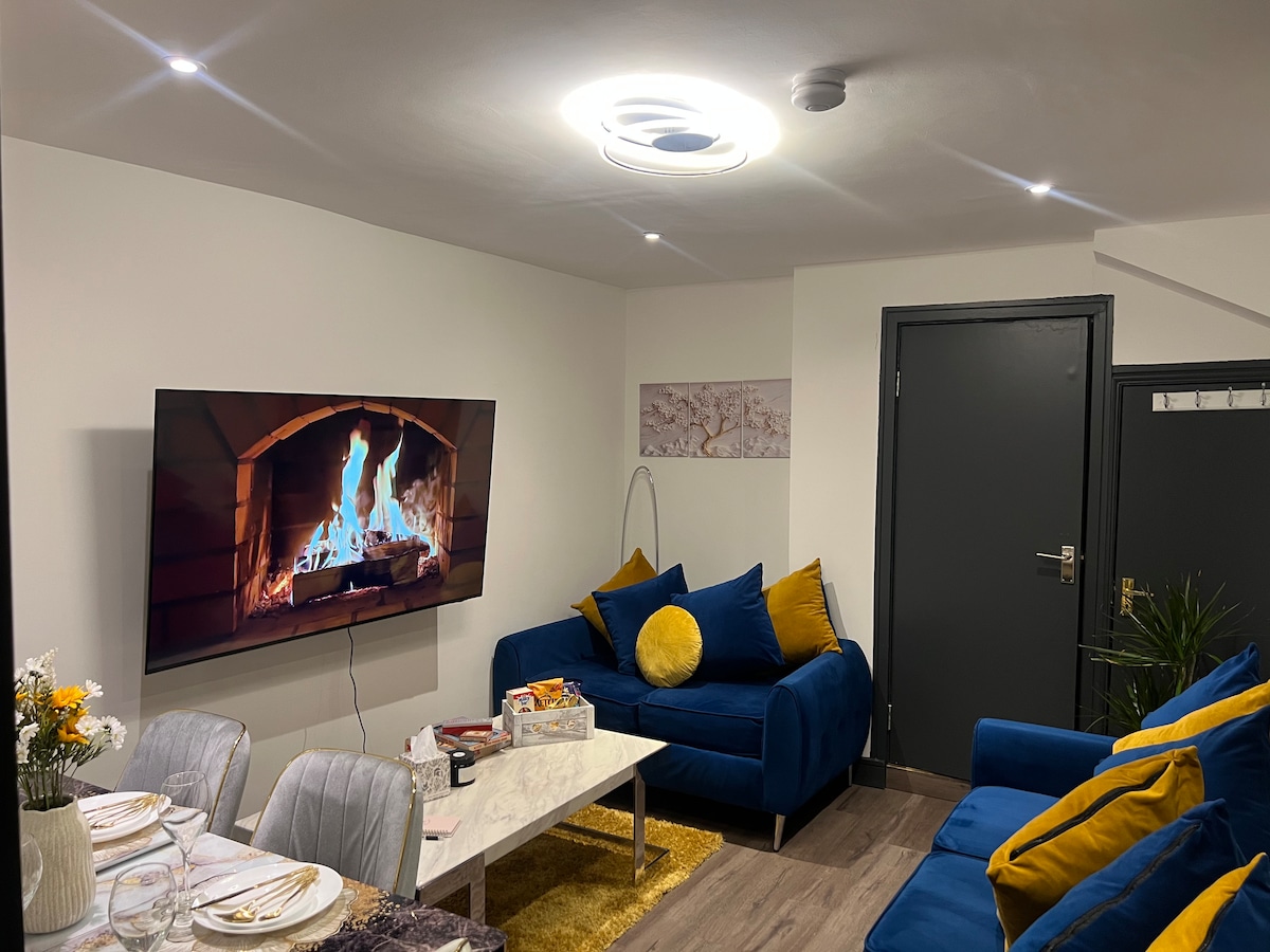 Modern lägenhet med 2 sovrum i hjärtat av Cardiff, perfekt för 4 gäster. Njut av ett elegant vardagsrum, fullt utrustat kök och snabbt wifi. Gångavstånd till Cardiff Castle (3 minuter) , shopping och nattliv. Perfekt för stadsresor eller affärsresor med komfort och bekvämlighet. SUPERSNABBT Virgin-bredband och TV. Duschkabin och separat badrum. Smart-TV: Netflix, Amazon Prime och YouTube (inloggning krävs). Fiberoptiskt supersnabbt bredband ingår.