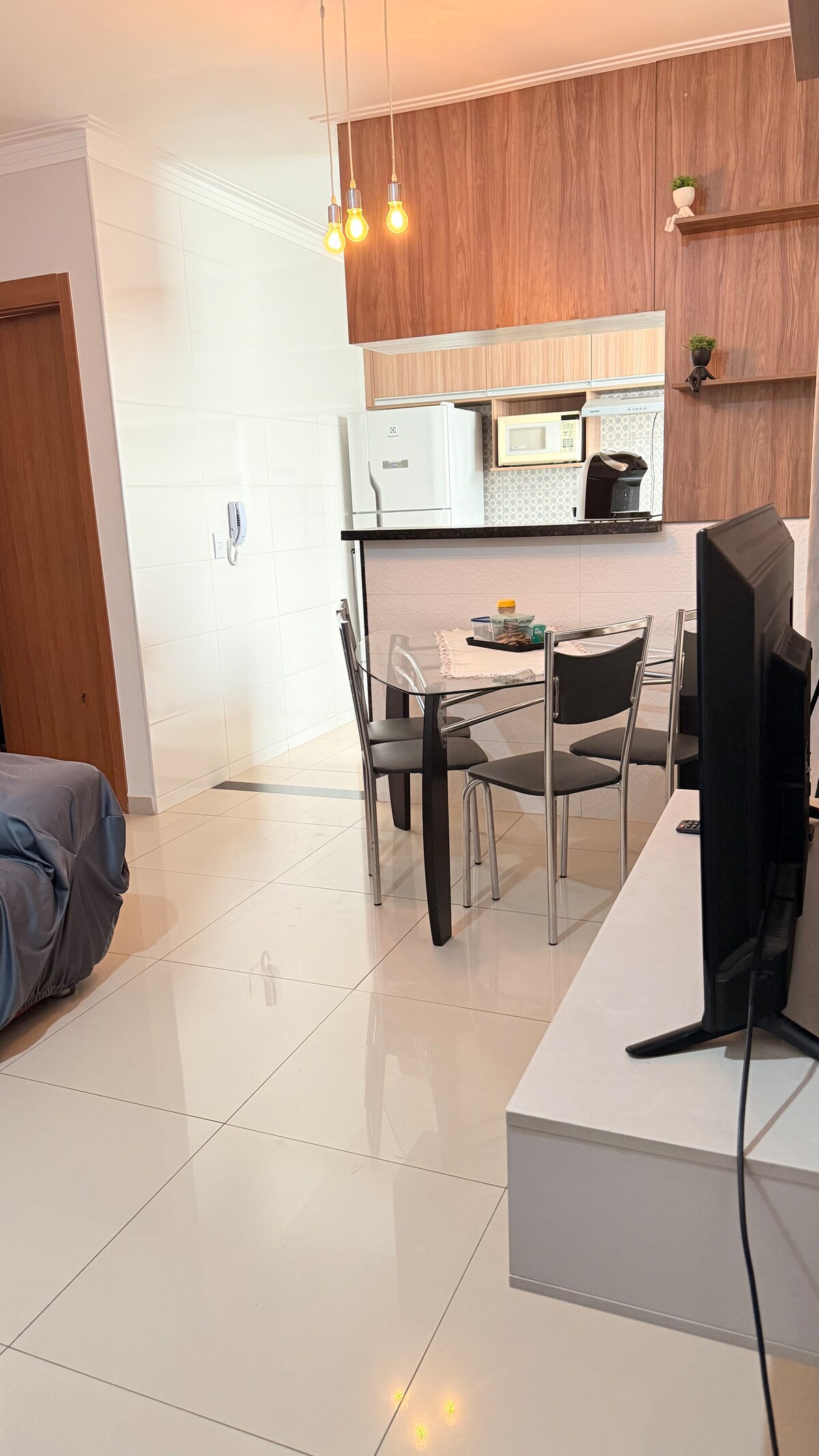 Seu lar fora de casa! Apartamento aconchegante e totalmente equipado para hospedar com conforto até 4 pessoas. Perfeito para famílias! O que você vai amar: • Conforto Total: Ar-condicionado, ventiladores e roupa de cama inclusa. • Cozinha Prática: Geladeira, micro-ondas, mini forno, liquidificador, panelas e cafeteira de cápsulas 3 Corações. • Diversão Garantida: Smart TV com acesso a Netflix e Globoplay + Wi-Fi rápido. • Praticidade: Ferro de passar. Informações Importantes: