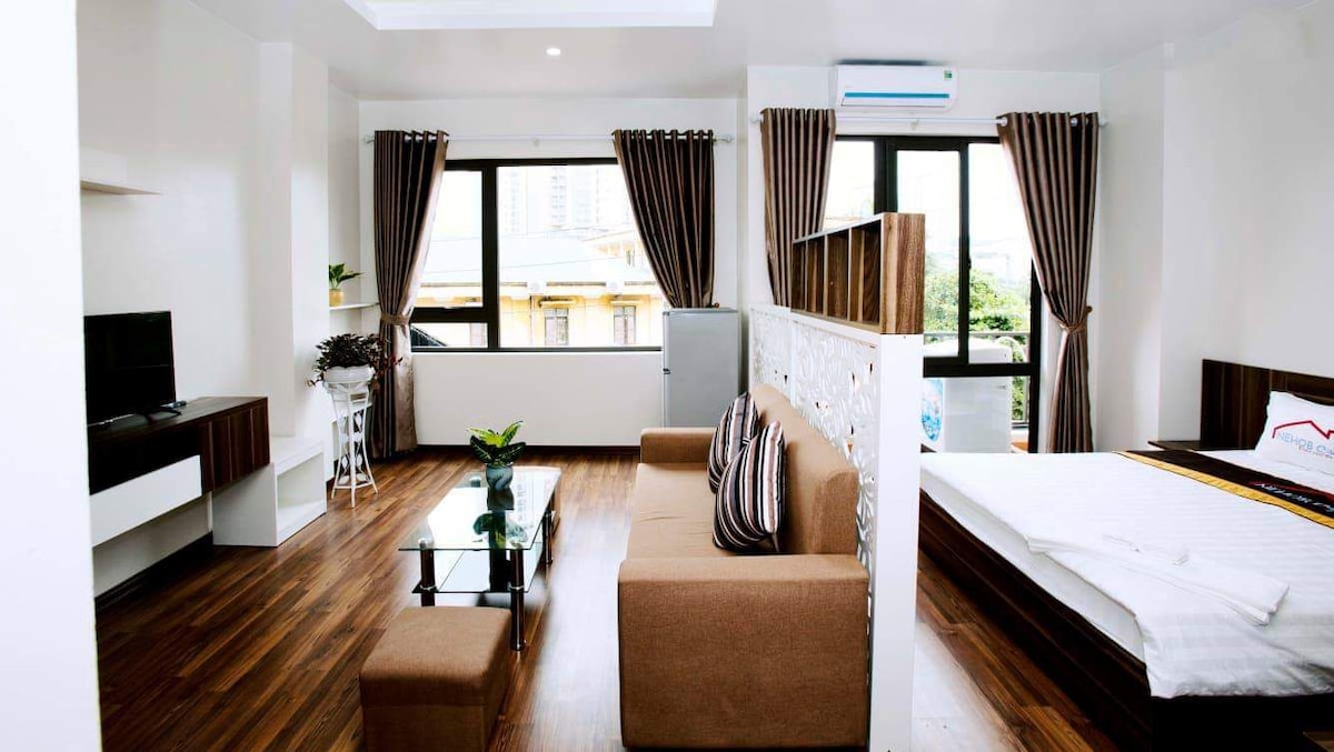 Förutom vår kedja av lägenheter i Hanoi introducerar Bao Hung Serviced Apartment 5 helt nya moderna lägenheter designade enligt japansk stil standard. Med mer än 45 m2, fulla möbler, BHA Executive City View - R1 stolt över att vara den bästa lägenheten för företag som behöver en privat plats för att bo och arbeta. Det finns en kreativ morgon när du sitter nära balkongen, tar en kopp kaffe och njuter av utsikten över staden.
