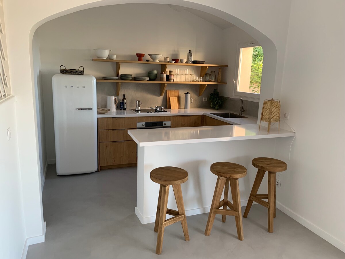 Charmig villa med uppvärmd pool, 7 minuters promenad till stranden och butiker. Villa Latemana ligger i ett lugnt område i hjärtat av Saint-Tropezbukten och inbjuder dig att njuta av solen på Franska rivieran året runt. Villan är perfekt för distansarbete i solen och för att träffa familj eller vänner, och erbjuder en privilegierad miljö som kombinerar komfort och livets goda sidor. Boendet har nyligen renoverats med högkvalitativa material och är luftkonditionerat. Det erbjuder ljusa, varma och välkomnande utrymmen.
