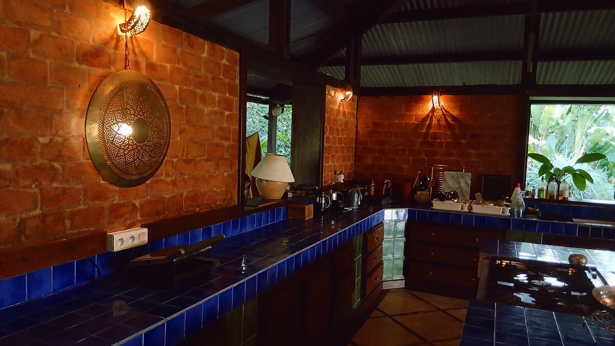 Villan "Les Jardins d'Emeraude" är helt ekologisk. Den byggdes med lokala naturmaterial: trä och tegelstenar av rå laterit, denna röda jord från Guyana är rik på järnoxid. Villan "Les Jardins d'Emeraude" är helt ekologisk. Den byggdes med naturliga lokala material: trä och rå laterit tegelsten, en rödaktig jord från Franska Guyana rik på järnoxid.