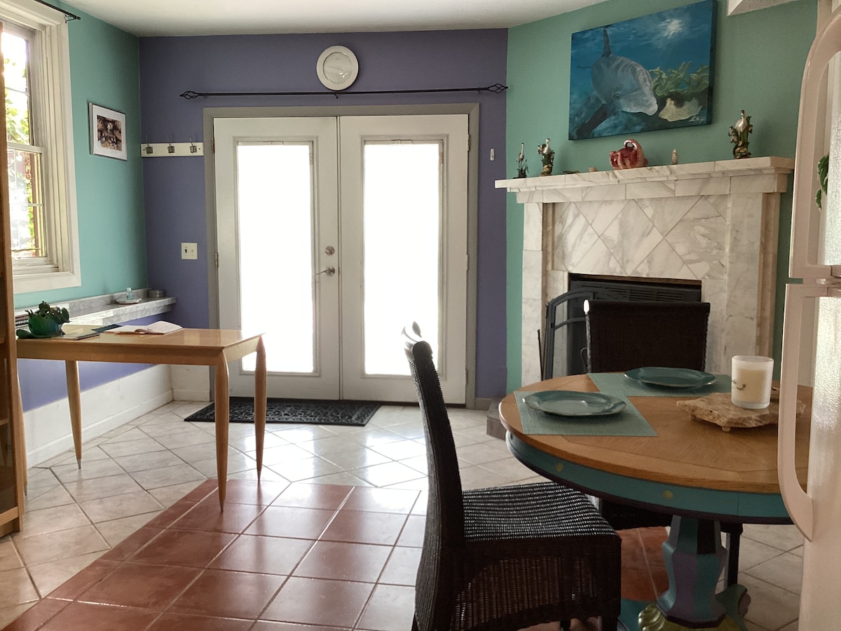 Denna flygel av min renoverade och restaurerade 1880-tals gård har privata fram- och bakre ingångar som leder till huvudkorridoren/salongen. Vardagsrum med TV, pussel, spel, kort, tidskrifter och mycket mer. Det angränsande köket och matplatsen erbjuder många bekvämligheter som kylskåp, spis, mikrovågsugn, kaffeservice. Under trappan finns ett halvt badrum. Uppför den stora trappan finns två stora queen-rum med fullt badrum en suite, samt ett extra queen-sovrum utan bad. Smakfullt, bekvämt, omtänksamt.
