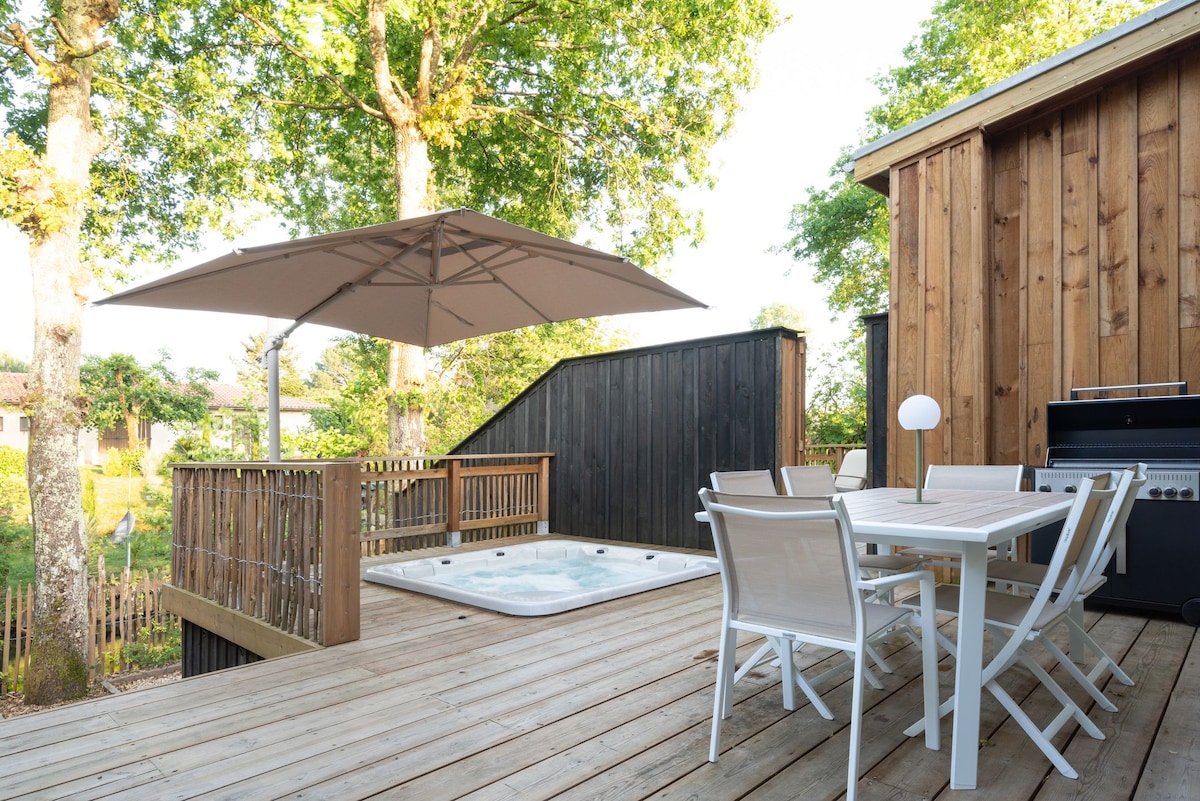 Ekologisk oas med spa som kombinerar design och avkoppling.