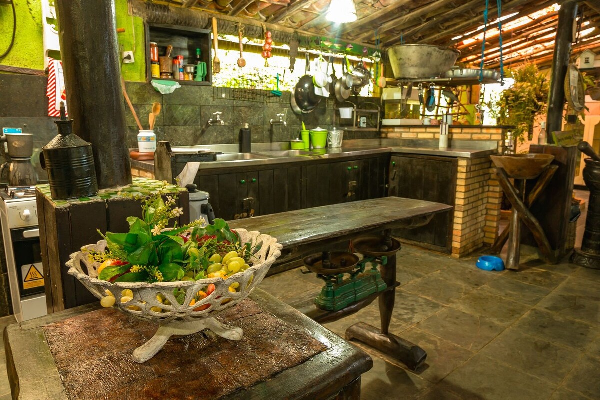 Grönt paradis i Mulungu, 17 km från Guaramiranga, en sval och mysig plats, perfekt för den som söker vila och kontakt med naturen. Det har ett komplett fritidsområde! Lägenheten består av en dubbelsäng och en våningssäng, kök med redskap såsom kylskåp, spis, krukor, mixer, etc. Privat badrum med varm dusch. I våra länder, krokar och fall (vinter) tillgängliga för våra gäster. Hon lämnade Recanto de Serra, sitt hem hemifrån.