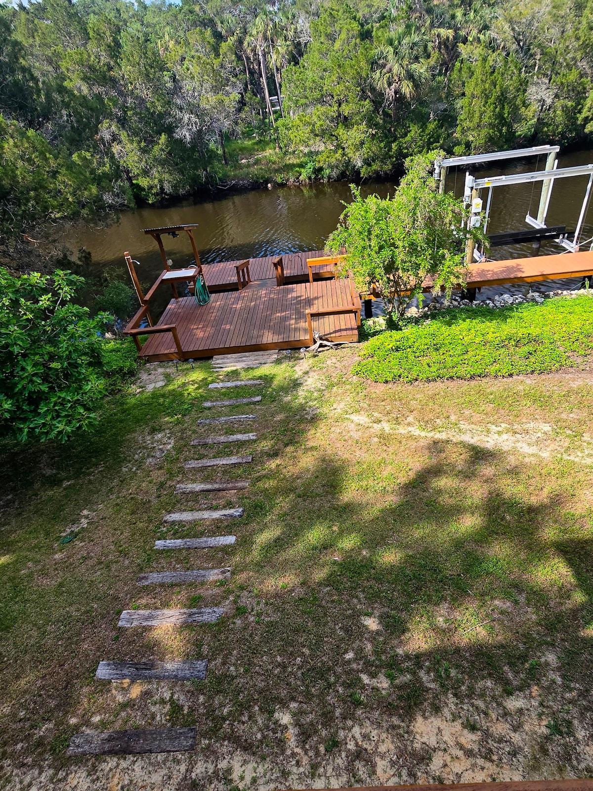 Come relax at the wooded half acer river side house! Boat ramp and private dock as well as kayaks available for use on property. Fully loaded laundry room, fully equipped kitchen. Spacious wood deck perfect for grilling what ever you’re catching off the dock side. Rained in? No problem just stay comfy in king size suite. Whether your boating, fishing , nature gazing or retreating were definitely the spot to fulfill your vacation needs.