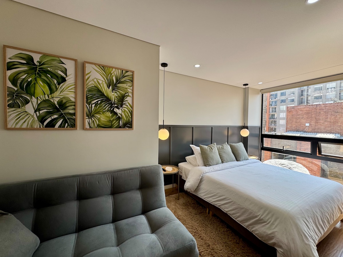 Sky är en duplex studiolägenhet idealisk för dem som söker design, lugn och komfort i Bogotá. Dess mezzaninarkitektur, moderna ytor och ett fönster från golv till tak fyller utrymmet med naturligt ljus och skapar en modern och mysig atmosfär med utsikt över bergen. Beläget i Cedritos, ett säkert och bostadsområde, nära till kaféer, restauranger och parker, med utmärkta förbindelser. Exklusiv förmån: ingen serviceavgift för Airbnb. Du betalar hela beloppet, inga dolda avgifter :)