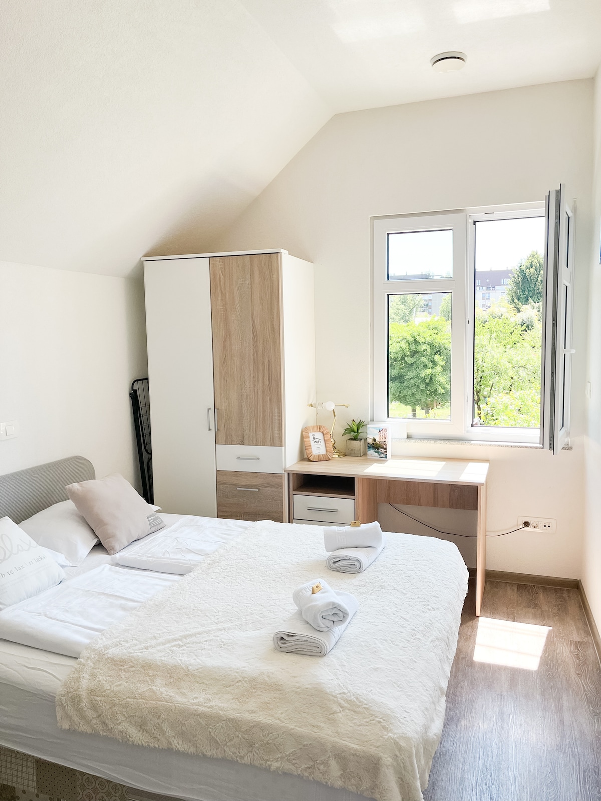 Vår takvåning, inbäddad under det ikoniska Ljubljana slott, är en harmonisk blandning av historia och modern lyx. Denna arkitektoniska pärla ligger inom ett kulturellt monument som erbjuder en oas i stadens centrum, ett lugnt område, med elegant inredning där historia och modernitet harmoniskt samexisterar. Du är bara några steg från stora attraktioner (marknadsplats, Funicular, Dragon Bridge...huvudbuss och tågstation). Bästa läget i stan, i korsningen av Ljubljanas kulturella gobeläng.