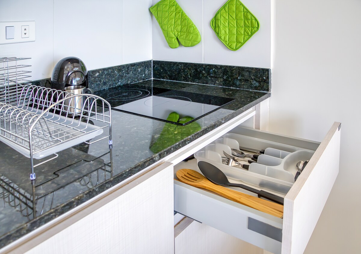Vår lägenhet ligger närmast stadens viktigaste shoppingcenter, Shopping Mariscal, som ligger bara 100 meter bort. Området är mycket säkert, banker, valutaväxlingskontor, de bästa restaurangerna och många matställen ligger bara några minuters promenad bort. Det har torr frukost, te och kaffe infusioner. Gym, kontorsdelning, 24-timmarsvakt, övervakningskameror i gemensamma utrymmen, terrass med pool, luftkonditionerad quincho med grill, Wi-Fi internet. Täckt parkering i byggnaden.