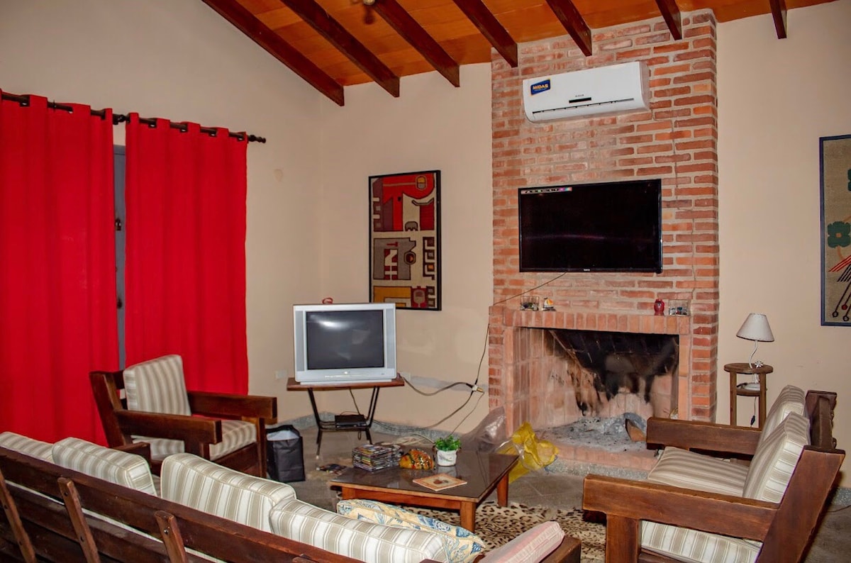 Perfekt för att koppla av med hela familjen och vänner på denna lugna plats omgiven av grönområden. - Bottenvåning: Den har en pool, jacuzzi, öppen quincho, grillar, eldstäder, en stor uteplats, tatacuá, två badrum och det sociala området integrerat i köket/matsalen. - Övre våning: har två sovrum, ett med en dubbelsäng (plus ytterligare ett), det andra har 2 enkelsängar (plus 2 extra) och ett delat badrum. Bara 200 m från Country Club SB. Gångväg till Pirayu 'i.