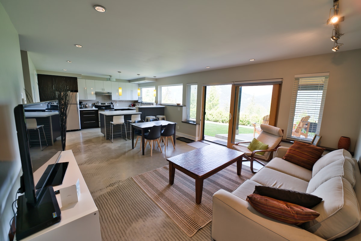 En vacker svit inbäddad i naturen. Det ligger strax utanför Balfour med tillgång till färjestationen, Balfour-butiken, en bensinstation och ett bageri. Ainsworth Hotsprings är en kort 15 minuters bilresa, Kokanee Creek Provincial Park ligger 10 minuter bort och Balfour Golf Course är ännu närmare! Nelson och alla dess bekvämligheter ligger cirka 25 minuters bilresa bort. 4-hjulsdrift rekommenderas under vinterväder eftersom den sista lilla sträckan är lite brantare. Vintervädret kan vara oförutsägbart.