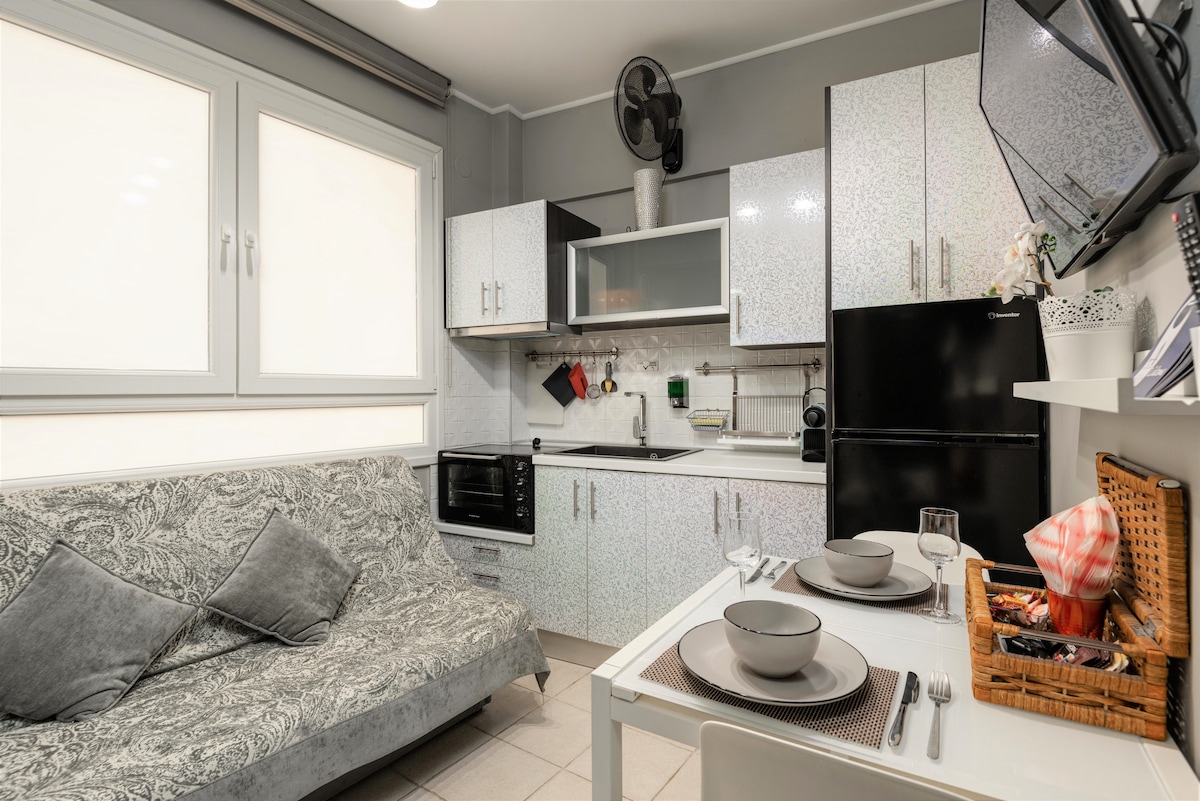 Välkommen till vår härliga och väldesignade lägenhet i centrum, bara några steg från den ikoniska Rotonda i Thessaloniki! Detta utmärkta läge erbjuder den perfekta blandningen av historisk charm och modern bekvämlighet. Kliv in i ett vackert inrett utrymme med genomtänkta detaljer som skapar en mysig och inbjudande atmosfär. Upplev stadens magi från bekvämligheten av vår eleganta tillflyktsort. Boka nu och skapa oförglömliga minnen i denna förtrollande destination!