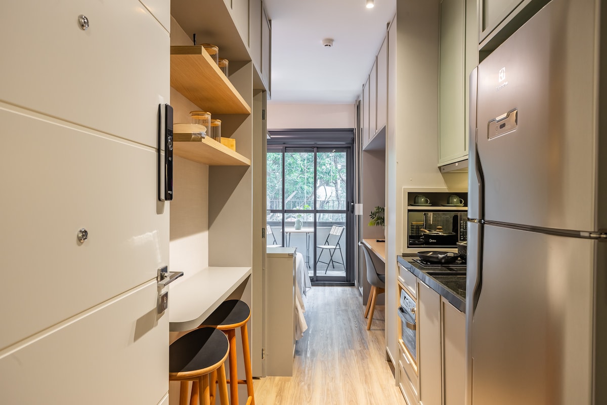 Lyxig studio några steg från Faria Lima