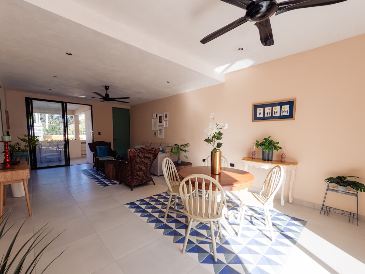 Lägenhet på bottenvåningen i kolonial och modern stil blandat med originaliteten hos en yucatecansk konstnär. Beläget i ett centralt område av staden, bara 10 kvarter från hjärtat av Mérida (1,5 km). 21 minuters promenad från den gastronomiska korridoren och Parque de la Plancha. Den har alla grundläggande tjänster så att du kan njuta av din vistelse.