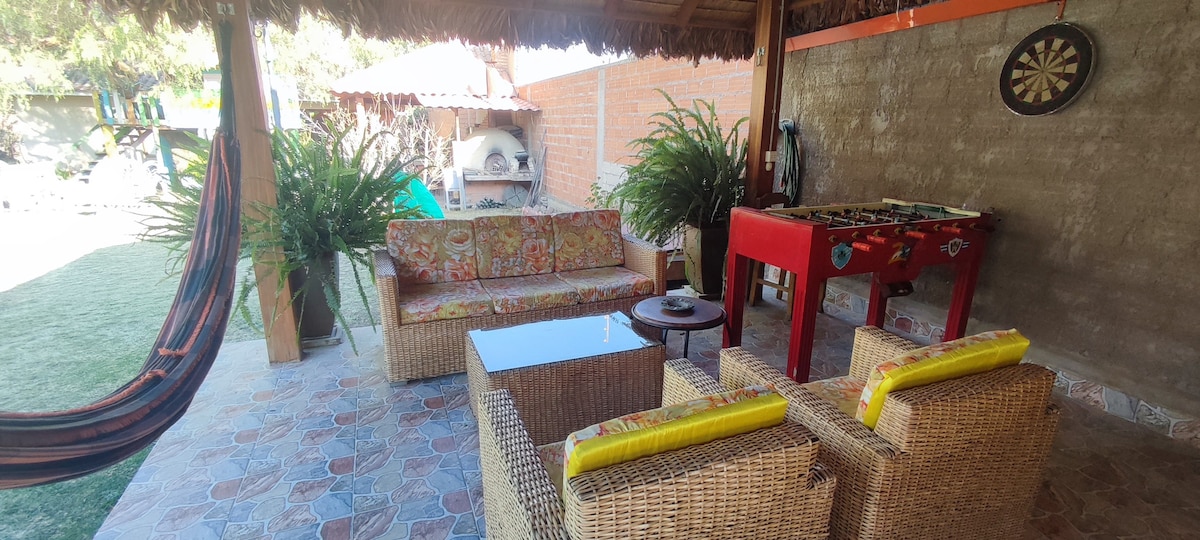 Koppla av med hela familjen och vännerna på denna lugna plats, njut av naturen, fruktträd och helt ekologiska säsongsbetonade grönsaker, en grillplats med en otrolig utsikt över staden och en spis för att njuta av kvällarna med familjen Bara 10 minuter från stormarknaden Hipermaxi och 15 minuter från stadens centrum, kollektivtrafik #40 som passerar genom dörren med en tur genom Simón López, Cala Cala, Libertador, El Prado, Plaza Colón, 25 de Mayo till den centrala marknaden.