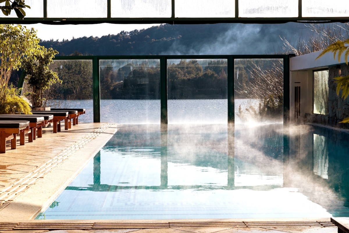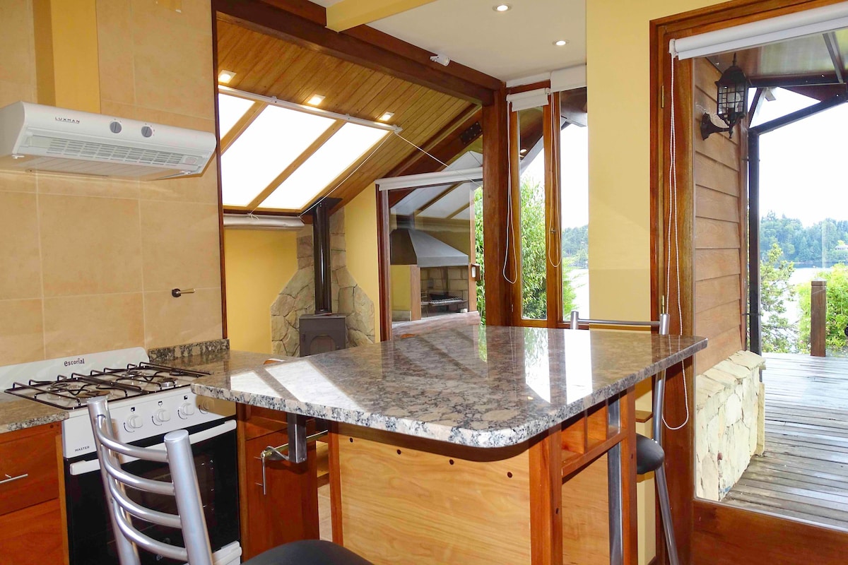 Detta unika ställe har sin egen stil. Sjöutsikt. Exklusiv strand. Tillgång till alla ARELAUQUEN-tjänster (golf/tennis/polo/gym) (*extra med avgift). 3 Med, 2 Quarters + 2 Bath. Uppvärmd pool, bastu, fullt utrustat pentry med grill (extra kostnad). Restaurang. Husdjur är inte tillåtna. Om du reser genom Buenos Aires, se till att fråga om lägenheten i Recoleta: https://www.airbnb.com.ar/rooms/645004579133935140?guests=1&adults=1&s=67&unique_share_id=fdbae814-2fd6-4b86-b7e5-86766ff807a7
