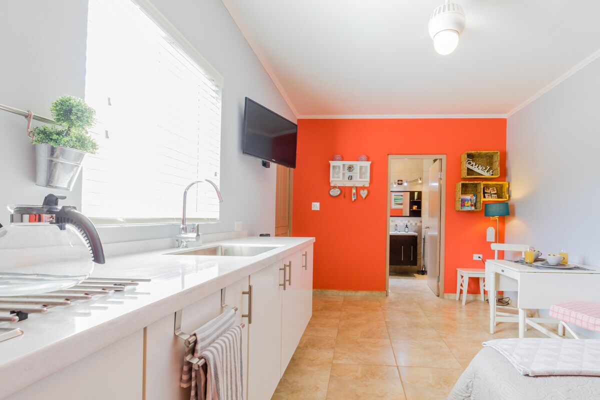 Mysig studiolägenhet med en parkeringsplats, egen ingång och uteplats omgiven av naturen i ett lugnt grannskap. På 15 minuters gångavstånd till Alto Vistas kapell, ett historiskt och fridfullt område beläget på öns nordkust. Nära körsträcka från Eagle Beach, Arashi Beach, Palm Beach och Boca Catalina. Studio-lägenheten har eget kök, strandstolar, badhanddukar, kyl och snorklingsutrustning.