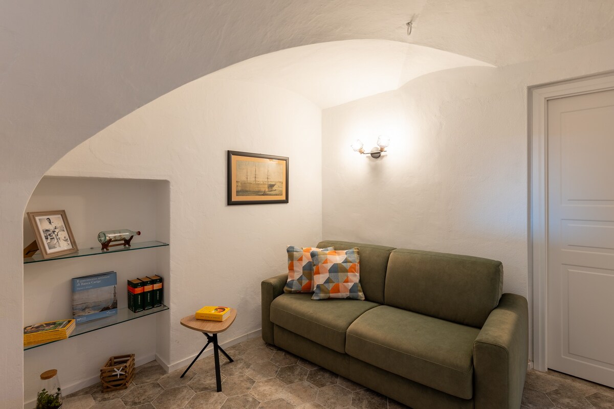 Our house is located in the heart of Cervo’s historical center, just below the Corallini square. The position is what makes the apartment so special and bright. All the main windows overlook the sea! Spread over an area of about 100 mq, the house is on one level, with large rooms with vintage finishes. It has two independent entrances and is made up of: one double bedroom, one room with two single beds, one living room with a bunk-bed, a kitchen and bathroom with a window.