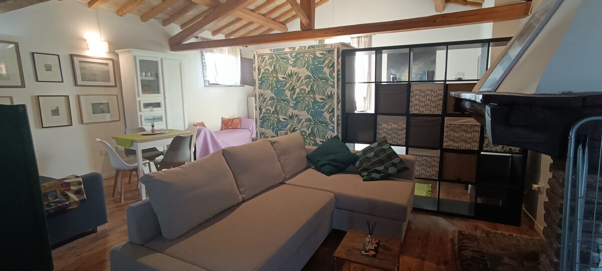 Välkommen till Anguillara! Den översta lägenheten i detta torn från 1500-talet erbjuder magnifik utsikt över sjön Bracciano. Med en bekväm dubbelsäng, ett nyrenoverat badrum, pentry och ett stort vardagsrum och matplats kommer du garanterat att ha en avkopplande vistelse. Anguillaras historiska centrum är charmig med bra ställen att äta på, och sjön ligger bara en kort promenad bort för att fräscha upp under sommaren!