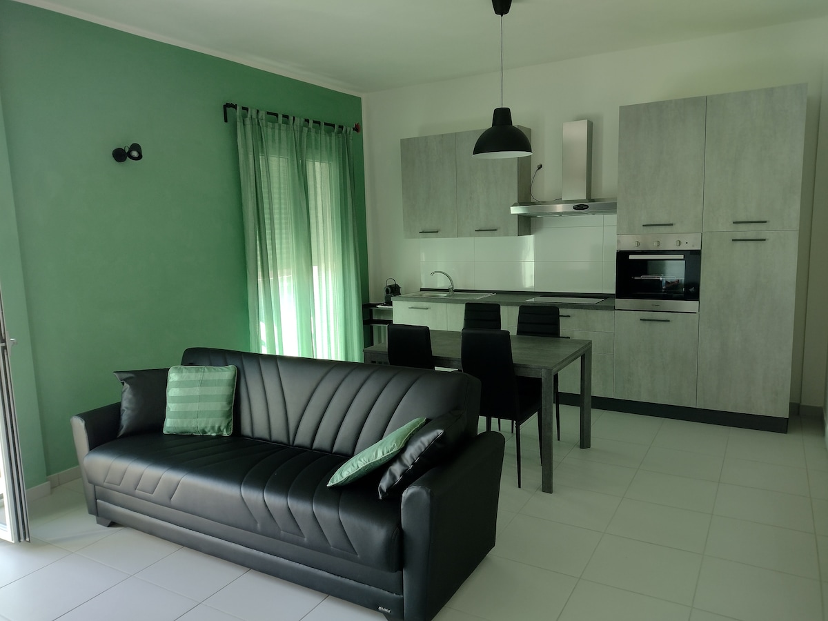 Helt renoverad modern studiolägenhet med kokvrå, stort badrum och separat tvättstuga. Stor gemensam innergård med cykel- och motorcykelställ, trädgårdsbord/stolar, parasoll. Komplett med smart-TV, luftkonditionering och WIFI. 5 minuters promenad från havet, beläget i ett bostadsområde, med gott om gratis parkering på gatan. I omedelbar närhet finns busshållplats och Metromare (50 m), restauranger/pizzerior, bar, bageri, marknad, bank. Perfekt för par eller vänner.