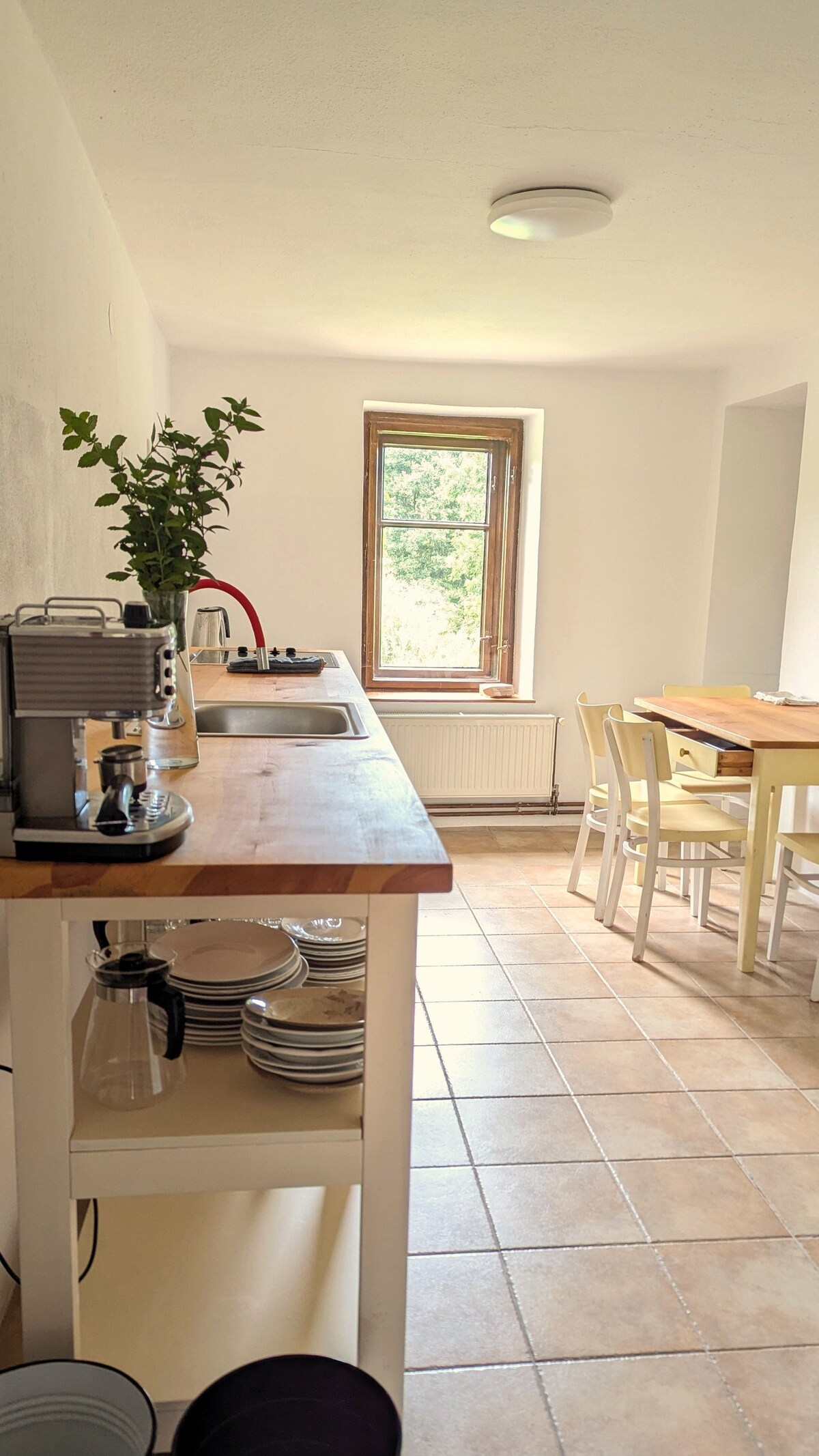 En traditionell sydbohemisk århundraden gammal stenhusgård väntar på dig i hjärtat av Blanský les kullarna nedanför Šumava. Omgiven av en vild trädgård med betande kor, får och kringströvande katter kan du plocka vinbär eller örter till te och samla svamp i de närliggande skogarna. Det finns en lugn sittgrupp strax utanför, säkert borta från den redan fridfulla vägen. Ett dedikerat kontor är tillgängligt för ostört arbete, vilket gör det enkelt att kombinera avkoppling med produktivitet.