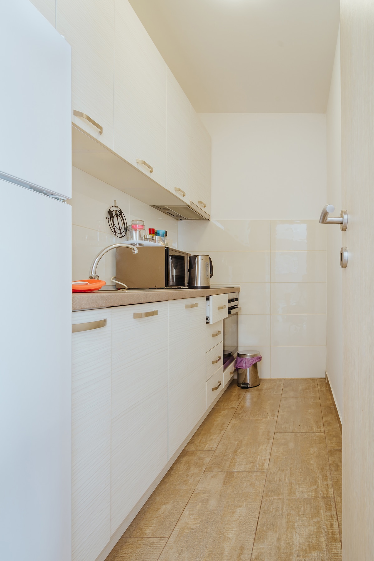 Studiolägenheten ligger på bottenvåningen i huset och har eget kök, badrum och privat balkong. Från balkongen kan du njuta av vacker utsikt över Boka Bay och Verige Strait. Gäster har också tillgång till terrasserna framför huset, som är ordnade på tre nivåer. Dessa terrasser erbjuder mat- och kaffebord, samt en utomhusdusch — perfekt för avkoppling och njutning av den friska havsluften.