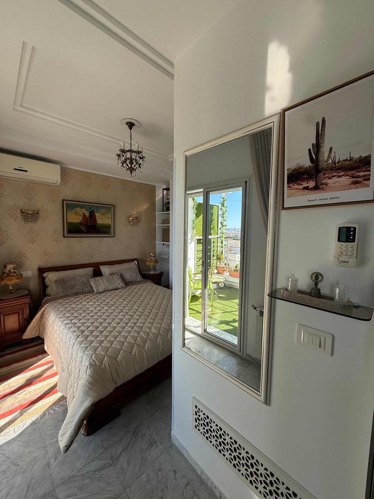 Fly till en mysig och charmig duplex i hjärtat av Sfax, perfekt utformad, den öppna konceptdesignen med naturligt ljus, fullt utrustat kök ger allt du behöver för att förbereda måltider och njuta av dem i den mysiga matplatsen med omgivande ljus, gör det till ett perfekt hem hemifrån perfekt för avkoppling efter en lång dag, bekvämt beläget i ett vänligt grannskap, du har enkel tillgång till alla bekvämligheter och lokala attraktioner du behöver för en bekväm vistelse.