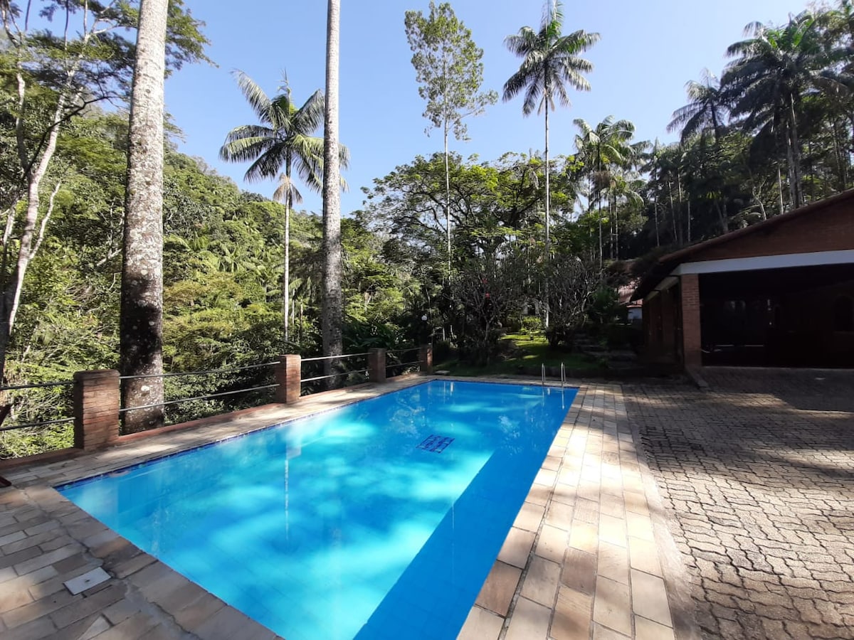 Gård i Penedo mitt i den atlantiska skogen bestående av ett huvudhus och en stuga. Vi har också på fastigheten: pool, privat bäck, bastu, öppen spis, grill, pizzaugn, stugkök med vedspis och en stor balkong. Den ligger mitt i den atlantiska skogen, med mycket grönska, fåglar och en bäck. Vi är nära de viktigaste vattenfallen i Penedo. Samtidigt ligger det nära bra restauranger och stormarknader. Perfekt för att ta emot familjer och grupper.