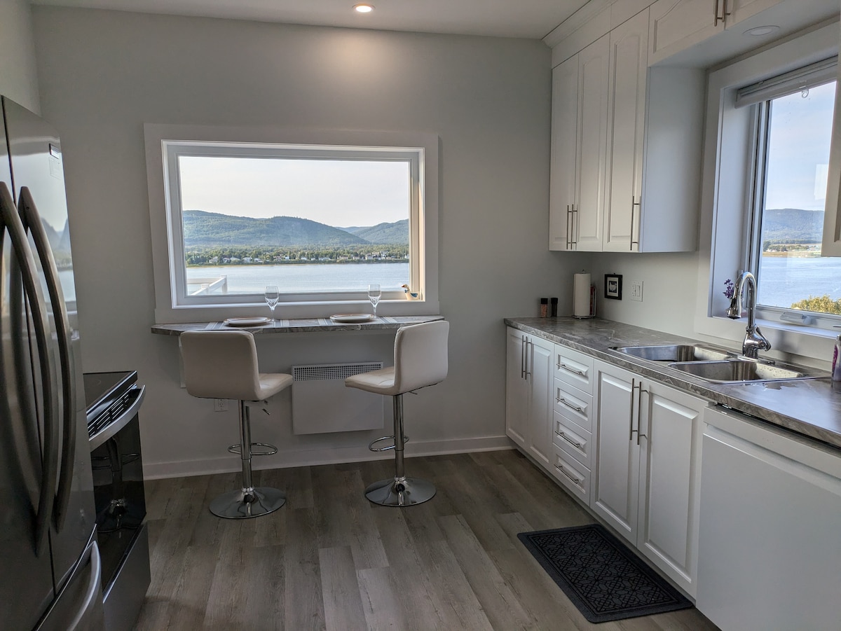 Välkommen till Cliffside Paradise, din fridfulla tillflyktsort vid Bay of Chaleur! Detta charmiga hem blandar mysig stuga komfort med fantastisk panoramautsikt, den perfekta platsen att koppla av, varva ner och återansluta. Kliv ut och njut av den hisnande naturen året runt från din privata bubbelpool eller autentiska cederfatbastu. Oavsett om du njuter av ditt morgonkaffe med utsikt eller varvar ner efter en dags äventyr, känns varje ögonblick speciellt. Perfekt för en romantisk semester eller familjesemester.