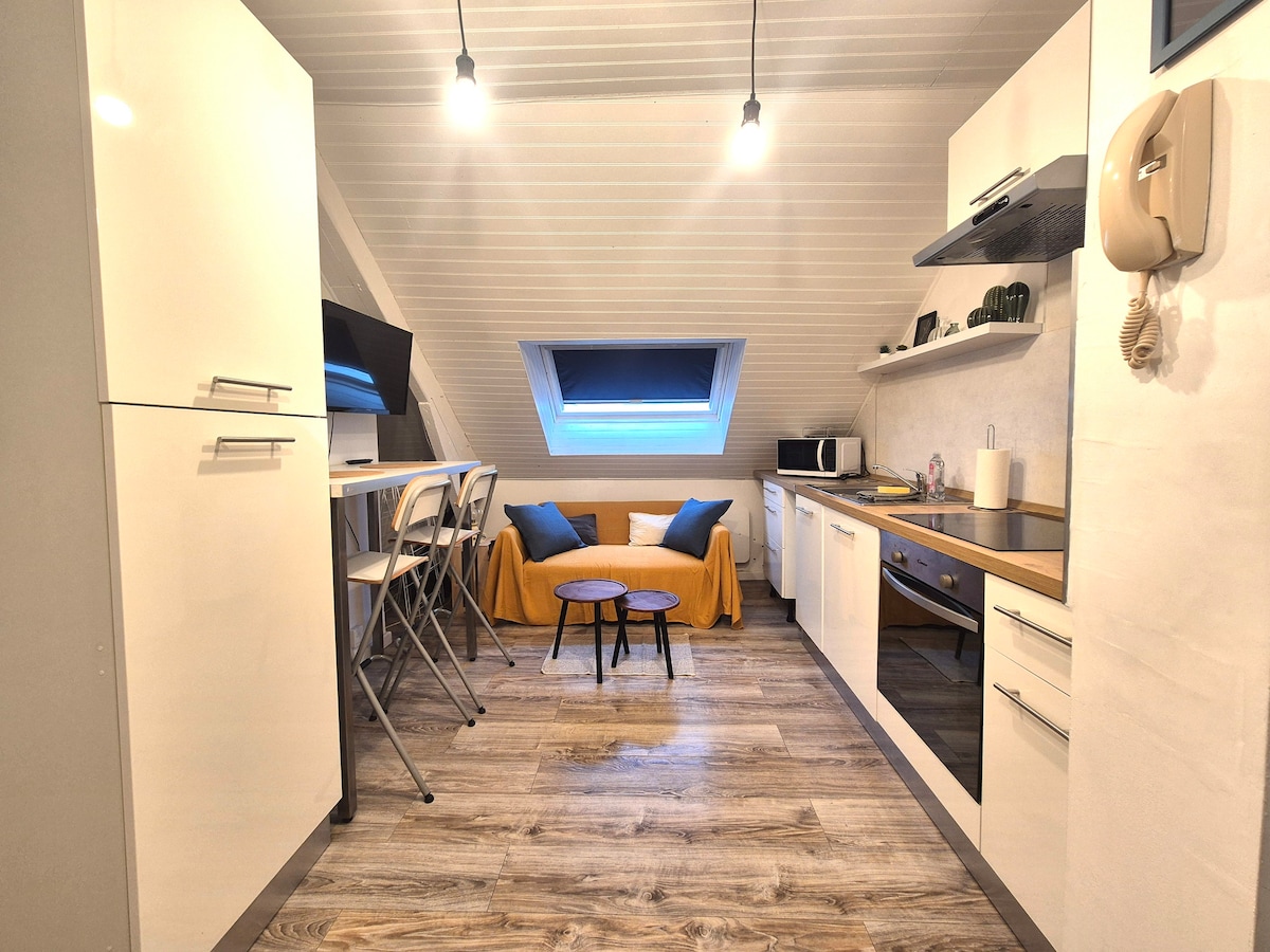 Ställ ner dina väskor i denna stora, eleganta, exklusiva studiolägenhet med alla bekvämligheter, helt renoverad av en arkitekt, i hjärtat av Reims. Allt ligger inom gångavstånd: centralstationen, Place d'Erlon, Boulingrin, restauranger och butiker ligger bara några meter bort. Ett sällsynt läge och en elegant, bekväm miljö för en bekymmerslös vistelse. ⚠️ Cyklar är inte tillåtna i lägenheten.
