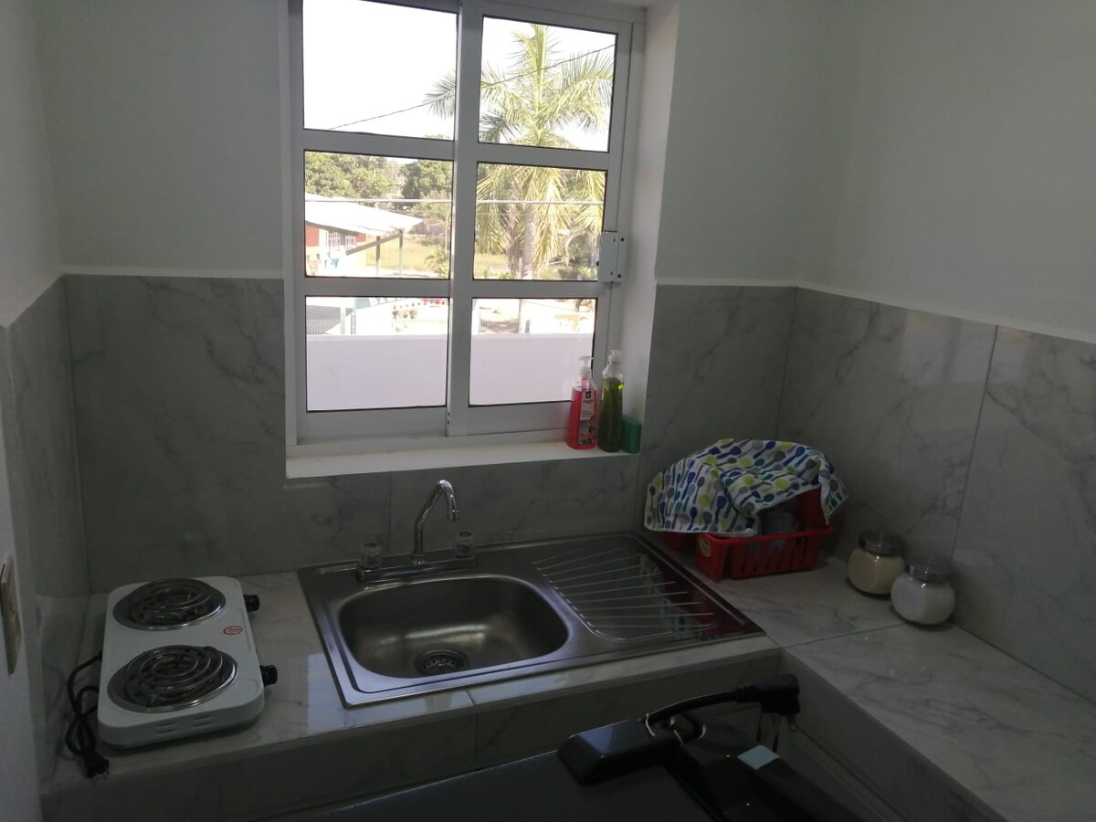 Sencilla y cómoda habitación para estancias cortas, vigilancia 24/7, cochera para un auto, en un ambiente muy tranquilo. (No contamos con agua caliente)