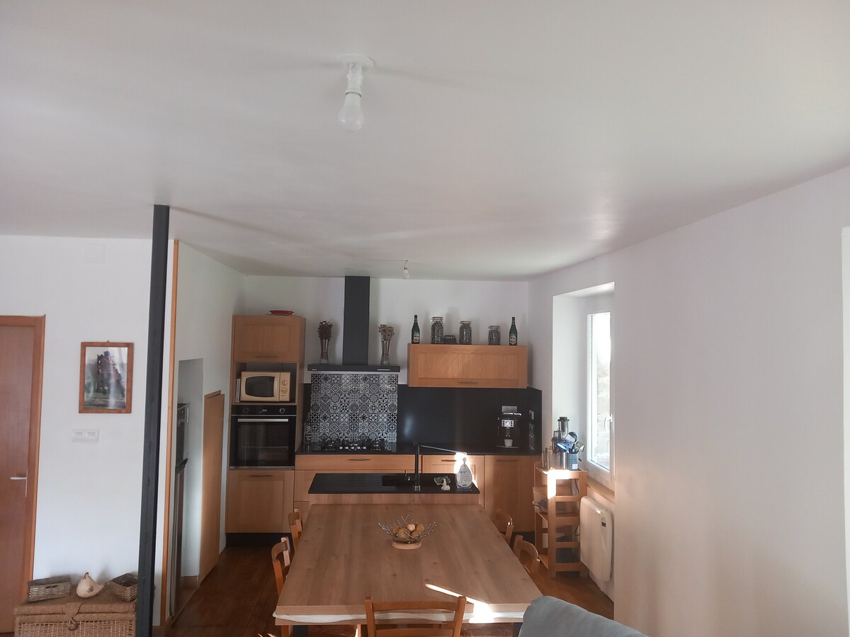 Upptäck En Haut du Paradis, en modern 94 m² miljö badad i ljus☀️, idealiskt beläget i Sadroc, i hjärtat av Corrèze. Med två sovrum med dubbelsäng🛏️, ett fullt utrustat kök och ett privat spa med 5 platser och spektakulär utsikt är det det perfekta stället att koppla av i avskildhet. Njut av lyxig komfort: luftkonditionering❄️, specialdesignade möbler, elegant badrum och en stenmur som ger charm och karaktär.