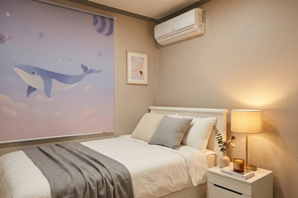 ✨ välkommen till popo: bo ✨ Det finns bara en anledning till att jag valde det här stället. Detta beror på att jag ville skapa en "plats där jag kan sova ordentligt" även mitt i Seomyeon. Det är den mest avlägsna platsen från buller, flödesbefolkning och utomhusblick på bottenvåningen och Main Street. Golvet som uppfyllde villkoren var här. Njut av en lugn vila och djup sömn som endast finns tillgänglig i mitt hem. Förutom klockan 10 ligger huset på det lugnaste stället. Ändå ligger Jeonpo Cafe Street 1 minut bort, och Seomyeon ligger inom 5 minuters promenad. Detta boende är Det är ett utrymme förberett för "de som verkligen vill koppla av".