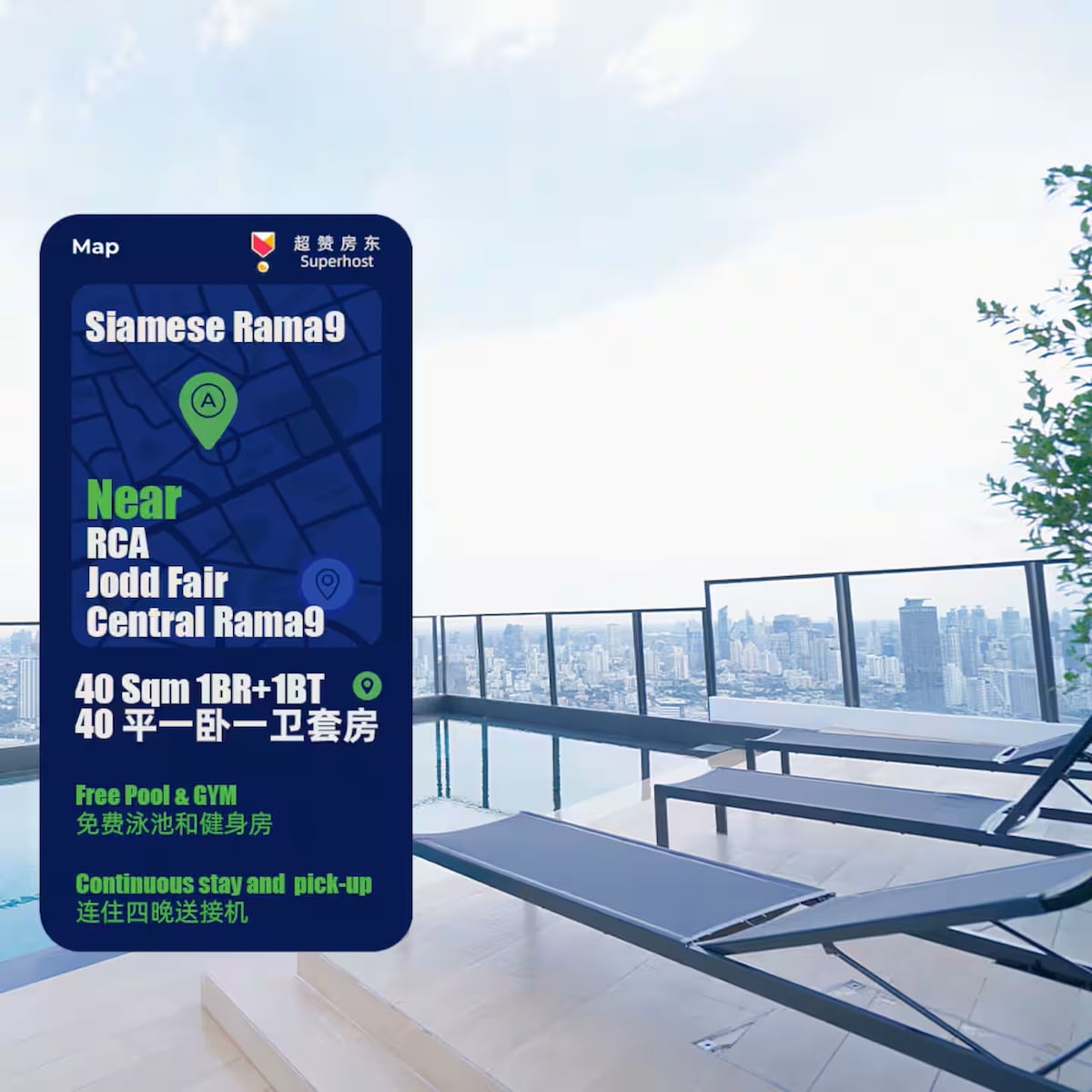 1 sovrum nära MRT/WIFI/pool/gym + hämtning på flygplats