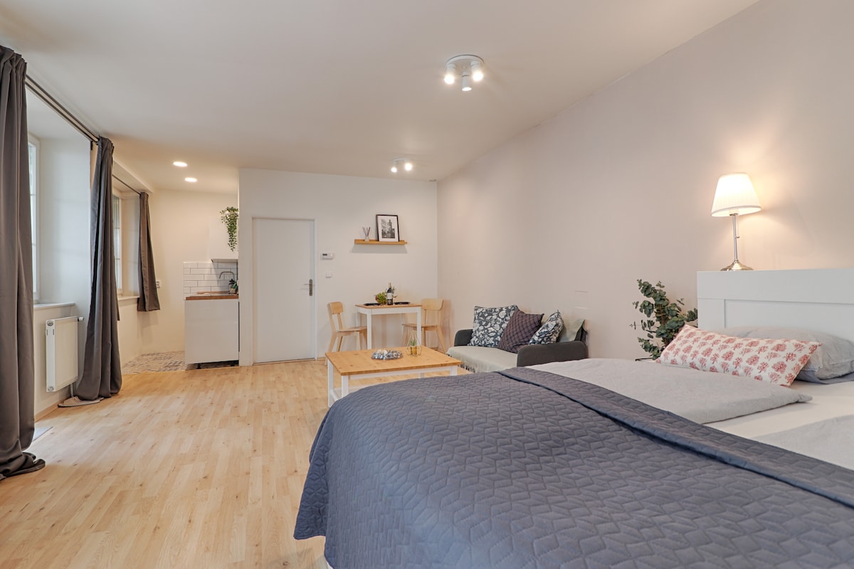 Ljus och bekväm studio nära Gamla stans torg