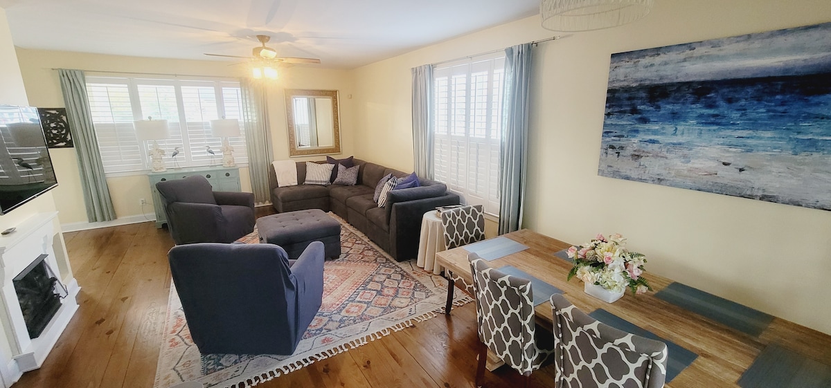 Bo här, och lita på oss, du kommer att vilja det. Vi har gjort denna duplex från 1960-talet till den perfekta platsen för att utforska Charleston och ha en avkopplande plats att komma hem till MED ditt husdjur om du vill! Medan du är här kan du njuta av konstverk och andra verk i hela duplexen av kurerade (många lokala) konstnärer som ägarna älskar. Njut av din kopp kaffe i vardagsrummet eller inhägnad på bakgården! Lagar du inte mat när du är på semester? Du kan promenera till en av de närliggande restaurangerna eller kaféerna vi älskar!