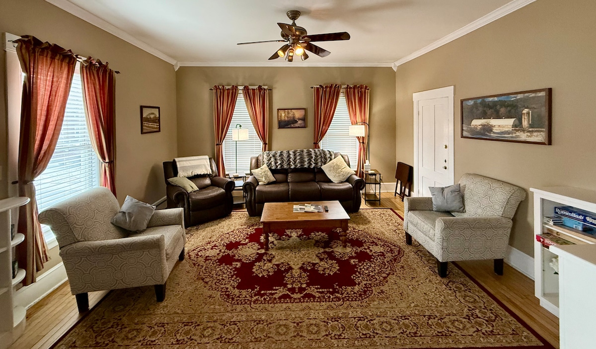 Charming and spacious first floor, 3 Bedroom, 1 Full Bath apartment. Sleeps 5 (1 King, 1 Queen and 1 twin). It is nestled in the center of the Bellows Falls village, a short 5-minute walk to downtown, where you will find great little shops and eateries. We are centrally located in Southern Vermont ~ 40 min from several ski areas (Okemo, Magic, Bromley, Stratton, etc.) about one hour from Killington Resort, Mount Snow, and Mount Sunapee (NH), and ~ 20 mins from Brattleboro, VT, or Keene, NH.
