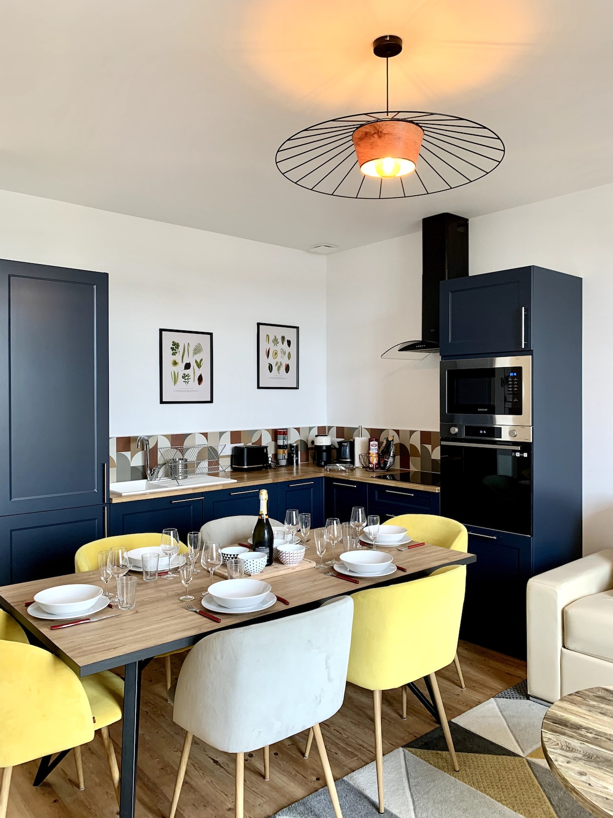 Lägenheten på 80 m² ligger på andra våningen, 5 minuters promenad från Château d'Amboise och 10 minuters promenad från Clos Lucé, och erbjuder ett stort vardagsrum med kök med en central köksö som är öppet mot vardagsrummet. De 2 sovrummen, varav ett på mezzaninvåningen, är möblerade med 2 enkelsängar. Boendet har 1 litet duschrum med dusch, 1 separat toalett och 1 badrum med toalett. (Senseo-kaffebryggare) Vänligen observera: Trappan som leder upp till andra våningen är brant och smal.
